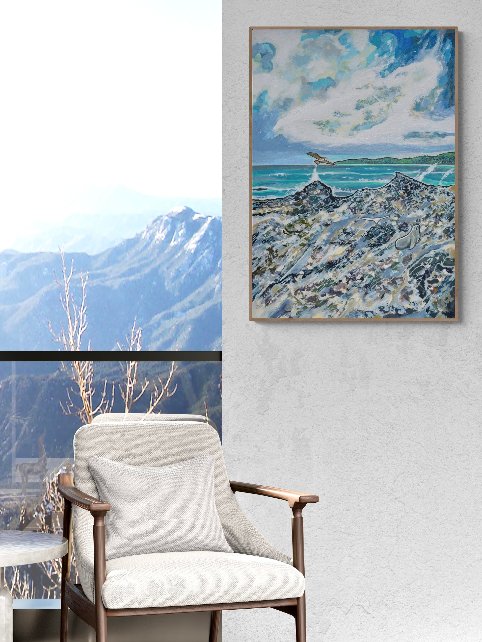 Over the years we’ve taken numerous camping trips to places like Bluff Hill Point, Arthur River, Couta Rocks, Strahan, and Granville Harbour, and I've always admired the rough coastal beauty of the west. In this piece I’ve sought to capture the contrasting tones and shapes of the jagged rock formations typical of that area, along with the wild, expansive ocean and its equally dramatic sky - everything about this region feels liberating and beautiful in its untamed wildness.